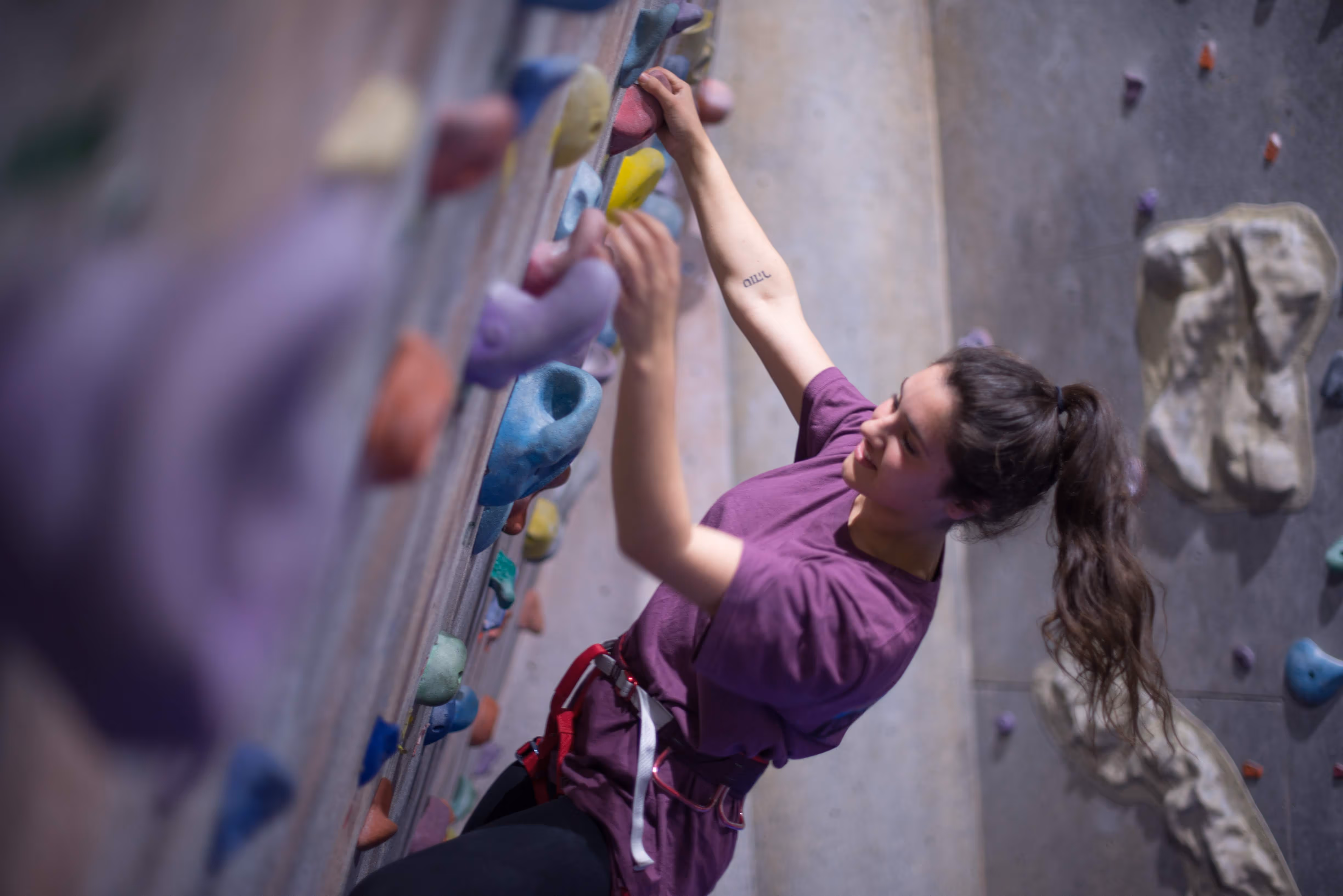 When you arrive, check in at the front desk. You can rent climbing shoes, harnesses, and chalk if you need them. Our team will help you find the right fit.